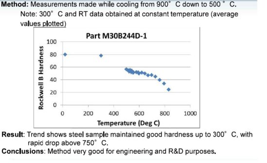 상온에서–>900도씨까지 온도 변화에 따른 ROCKWEL방식 경도수치 변화 ;