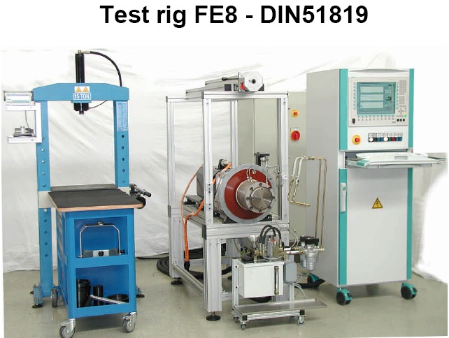 DIN51821 시험법. 섀플러사의 FAG 롤러베어링의 그리스의 수명 시험기. 고정하중 고정 마찰 속도에서 온도를 계속 올려가면서 5개의 시험베드에서 각각의 베어링의 마찰계수가 정상수치를 넘어갈 때, 즉 Seizure(=베어링의 융착)이 발생시, 시험을 자동 종료 시키고, 베어링와 그리스의 수명 Life Time을 측정 한다.