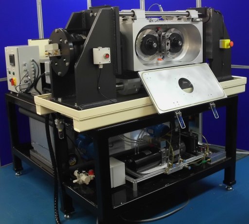 DIN51819 시험법. 구름베어링의 윤활성평가 시험기. 시험방법으로는 시험베어링의 마찰력이 과도화 된 순간. 최대소음을 넘어가는 순간에 베어링샘플의 내마모도 마찰력변화 온도를 측정 합니다.